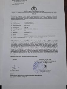 Alhasil Ahmad Muzakki dengan bersama tim ditanggapi oleh petugas piket di Polsek Gending dengan terbitnya LP/B/26/V/2025/SPKT/Polsek Gending. Dalam melaporkan Tindak Pidana pengeroyokan dan Penganiayaan UU Nomor 1 Tahun 1946 tentang KUHP sebagaimana dimaksud dalam Pasal 351.