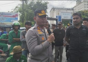 Ditengah kerumunan massa aksi, Kapolres Pelabuhan AKBP Restu Wijayanto mengingatkan para pendemo agar tertib dan tidak menganggu arus jalan raya.